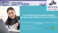 |  | The TAPPEO Project: Embracing Linguistic Diversity in Early Childhood Education in Romania Irina Gheorghiu, Albert Ludwigs Freiburg University (Germany) Roxana Barbieru, EuroEd Primary School Iasi (Romania) Roxana Neagu, EuroEd Primary School Iasi (Romania) Claudia Elena Dinu, Gr. T. Popa University of Medicine and Pharmacy, Iasi (Romania) Irina Ionita, Gr.T. Popa University of Medicine and Pharmacy Iasi (Romania) Stefan Colibaba, Al. I. Cuza University (Romania) |