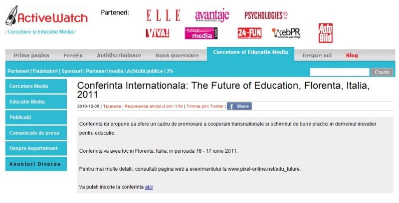 Several portals publish the information about the International Conference �The Future of Education�.